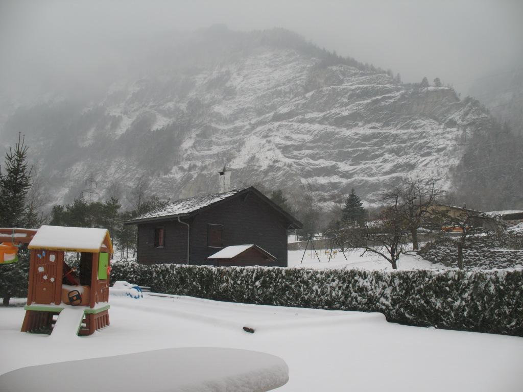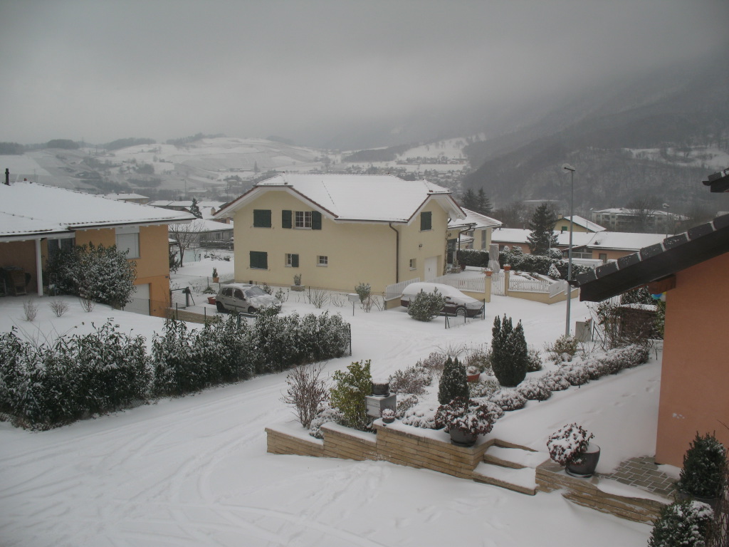 il y a 10cm ici ! en une nuit wow :P Il a beaucoup soufflé par contre on voit qu'a des endroit il y a pas de neige et à d'autres des tas ! Et ca neige toujours !