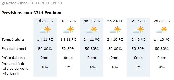 En tous cas ce ne sera pas pour la semaine prochaine, Ils annoncent beau tous les jours à Frutigen, je vais pas me plaindre pour faire des choses stupide dehors déguisé en plante verte, c'est mieux comme ça.