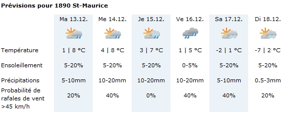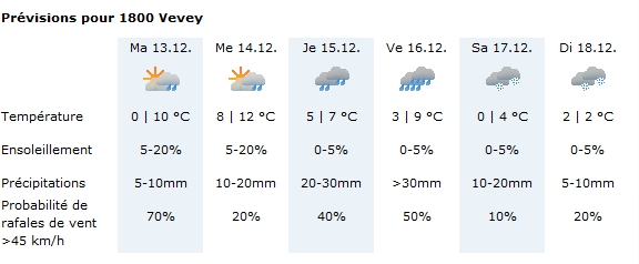 Vevey / St-Maurice, il y a que 30km de distance entre les 2 villes je vous laisse regarder la différence niveau température, surtout dimanche![]()