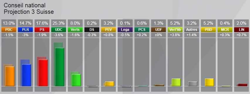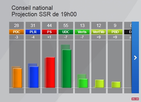 Il sembleraient que les "vieux" partis perdent encore plus que ce que les projections disaient l'UDC en tête!
