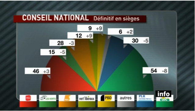 En gros avant, le parlement était au centre ( PS + verts VS UDC) et il reste au centre mais avec une multitude de nouveaux partis centristes.