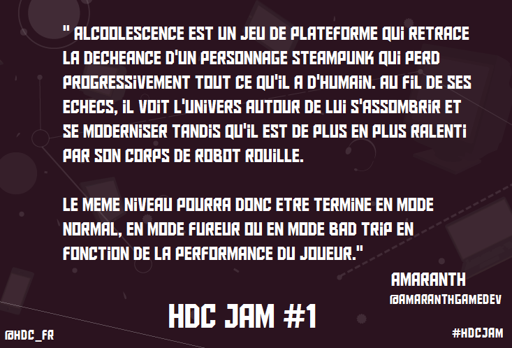 Ici pour une première nous avions un seul thème, l'Obsolescence. Quelques contraintes : La Jam doit être dématérialisée et se dérouler sur notre serveur Teamspeak. avec 5 inscriptions on se retrouve avec 3 projets au bout des 48 heures imparties.